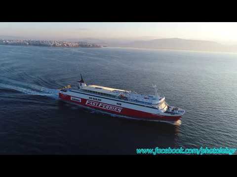 Drone video of F/B Fast Ferries Andros during a morning departure from the port of Piraeus, to Syros, Tinos and Mykonos.