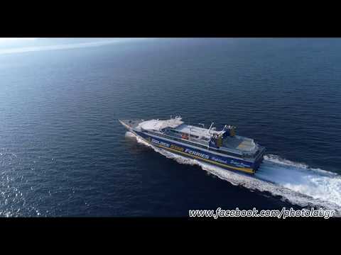 HSC Super Runner of Golden Star Ferries filmed from air during a summer departure from the famous island of Mykonos !